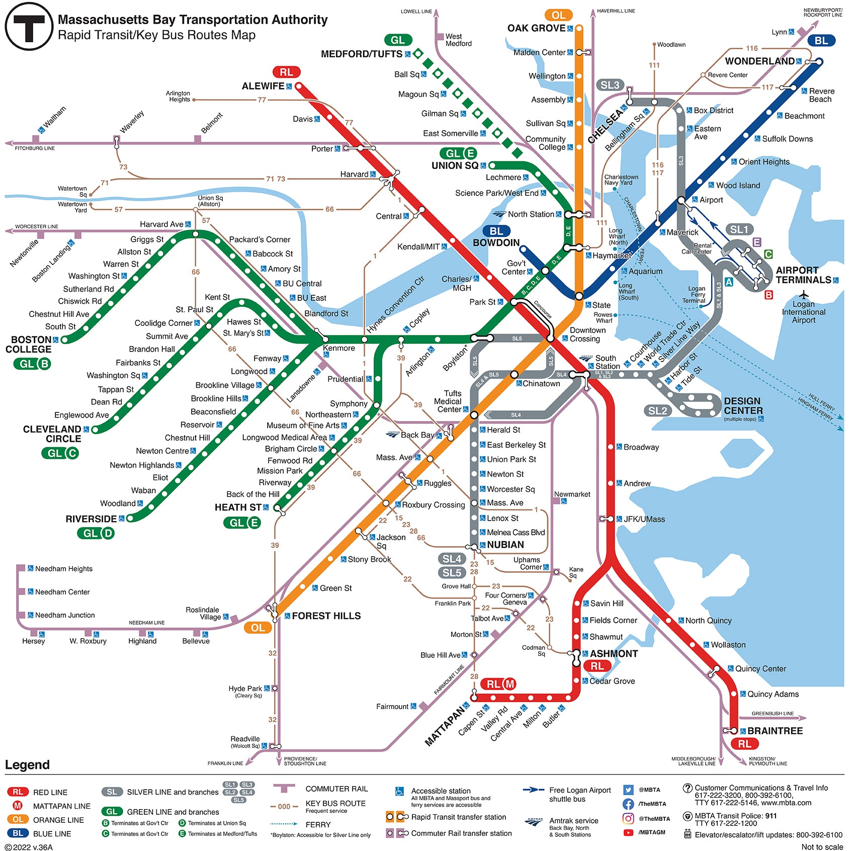 2022 MBTA Rapid Transit / Key Bus Routes Map (March 2022) โ MBTAgifts