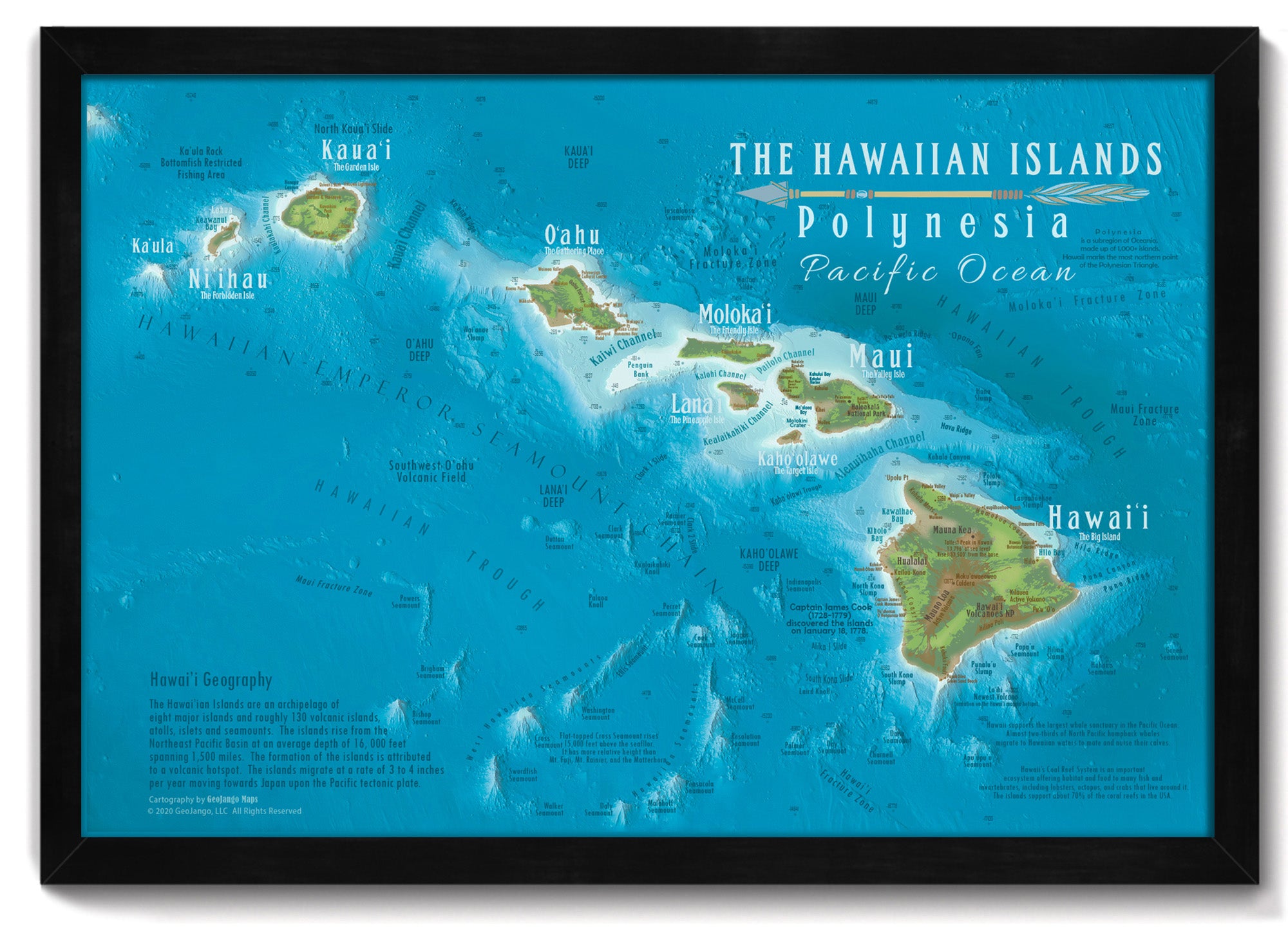 Map of Hawaii and Hawaiian Islands Names Tropical Art Push Pin